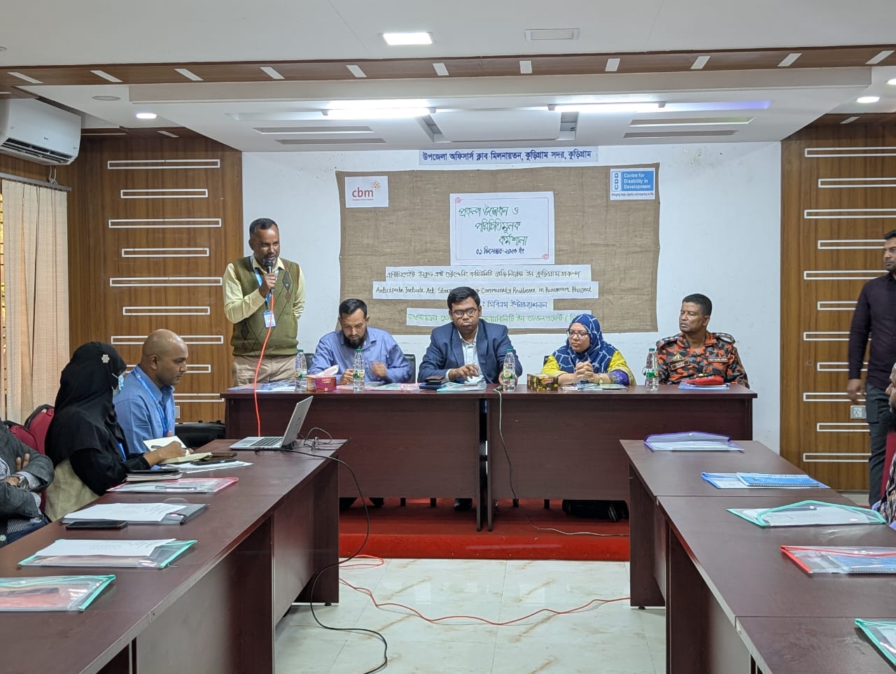 সিডিডি’র প্রকল্প টিম কর্মশালায় প্রকল্পের কর্মপরিকল্পনা উপস্থাপন করেন। পরবর্তী প্রশ্নোত্তর পর্বে অংশগ্রহণকারীরা দুর্যোগ প্রস্তুতি, অন্তর্ভুক্তিমূলক মানবিক কার্যক্রম এবং কমিউনিটি রেজিলিয়েন্স বিষয়ে নানা মতামত ও প্রশ্ন উত্থাপন করেন। প্রকল্প দল এসব প্রশ্নের উত্তর দেওয়ার পাশাপাশি প্রাপ্ত মতামত বাস্তবায়ন পরিকল্পনায় অন্তর্ভুক্ত করার আশ্বাস দেন।